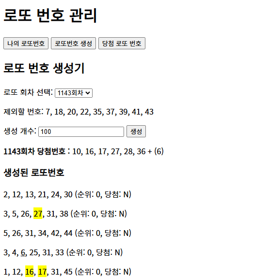 | 21일차) 로또 제외수와 정확도 표시 기능 추가 (0) | 2024.10.27 |
